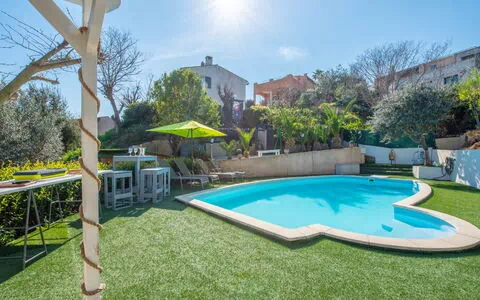 Villa "Claire", bonita de 2 plantas. En las afueras de la localidad, a 2 km del centro de Cavalaire sur Mer, a 3 km del mar, a 3 km de la playa. Privado: terreno 1'500 m2 (vallada), piscina occulta desde el exterior, vallada (8 x 4 m, 120 - 200 cm de profundidad, Disponible por temporada: 01.Jun. - 30.Sep.). Casita de piscina con nevera y cocina, muebles de jardín, barbacoa. Tienda 2 km, tienda de comestibles 2 km, supermercado 2 km, centro comercial 10 km, restaurante 2 km, playa de arena "Plage de Bonporteau" 3 km, parque "Aqualand" 24 km, centro de buceo 2.4 km. Puerto deportivo 3 km, escuela de vela 3 km, minigolf 12 km. Atracciones en los alrededores: Azur Park, Paint-ball 12 km, Bowling à Port-Grimaud 13 km, St-Tropez 17 km, Ste-Maxime 24 km. Zona de senderismo Sentier du Fenouillet 700 m, Sentier du littoral 9 km, Toulon 60 km. La entrega de llaves se realiza por la agencia Interhome en Cavalaire.