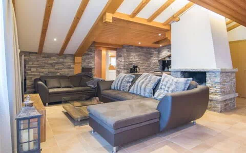 110 m2. Más información del proveedor: Newly renovated apartment with 3 bedrooms, 2 bathrooms in the house Sonnhüsli. The apartment is a penthouse apartment on the 4th floor (no elevator) and thus has a fantastic view of the mountains. The apartment was partially renovated in summer 2017 with new furniture, new kitchen & new floors. In Summer 2019 one bathroom was completely renovated as well. In 1 bedroom there is a double bed, in 2 bedrooms 2 single beds each. Since one bedroom is maintained by the sloping roof, this bedroom is only suitable for children and not for adults (note photos). Both bathrooms are equipped with shower / WC. Washer & Dryer are also located in the apartment. The living room is very spacious and has a large dining table. Wifi can be used free of charge. The apartment is in the quiet neighborhood "Wildi" near the forest, about 15 minutes’ walk from the cable cars. The local bus stop is just 50 meters down the road. The local bus is free and runs regularly directly to the village center and the cable cars.