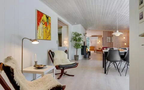 Esta casa de vacaciones de una sola planta, construida en 1966, se encuentra en el paisaje costero de Frederikshavn, Dinamarca. La propiedad ocupa una parcela privada generosa de 2.500 m² en estado natural, lo que proporciona una sensación de aislamiento y tranquilidad. El interior cuenta con sauna y lavadora. La conexión Wi-Fi está disponible en la propiedad; hay aparcamiento en el lugar.