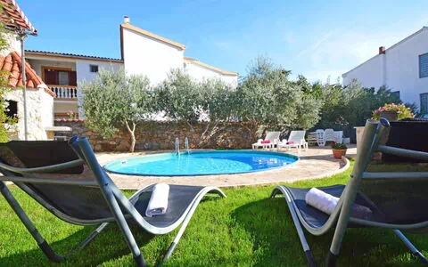 El jardín privado crea un espacio verde sereno donde relajarse y disfrutar del sol mediterráneo. La piscina mide 5 metros de diámetro y tiene una profundidad de 120 centímetros; está disponible del 1 de mayo al 31 de octubre. Una ducha exterior se encuentra cerca de la piscina. El mobiliario de jardín proporciona un espacio cómodo para comer al aire libre y el descanso; hay una barbacoa con columpio que añade un toque lúdico a las reuniones al aire libre.