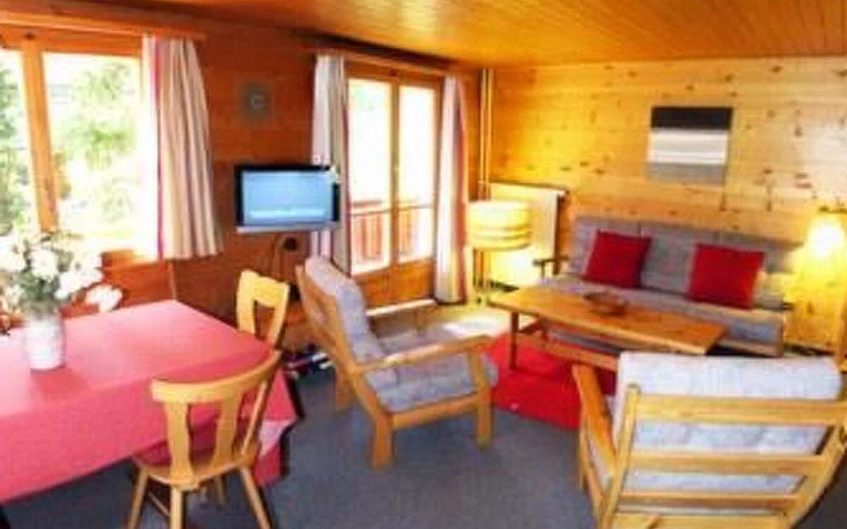 Typical Swiss chalet in quiet and sunny area. Consisting of 4 bedrooms, 2 living rooms, 2 kitchens, 2 newly renovated bath WC and 2 south-facing balconies. The furnishing is simple. Bus station just in front of the chalet, driving every 20 minutes to the slopes! 15min by foot to the centre & ski station. Free Wifi!
