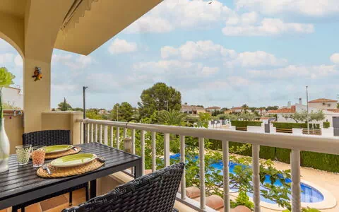 Cap Roig a 3 km de L'Ampolla: Casa de dos viviendas "Mitjorn", muy bonita, confortable de 2 plantas, adosada por un lado. Lugar tranquilo, soleado, a 500 m del mar, a 500 m de la playa. Comunitario: jardín (vallado) con césped, piscina redonda (Disponible por temporada: 01.Jun. - 31.Sep.). Ducha exterior. Privado: jardín (vallado). Muebles de jardín. En el inmueble: acceso a internet, Wifi. Aparcamiento n. 3 (cubierto). Tienda 3 km, supermercado 3 km, restaurante 200 m, playa de arena 500 m. Puerto deportivo 3 km. Atracciones en los alrededores: Portaventura 65 km, Parque natural del Delta del Ebro 9 km, Golf Pitch & Putt 4 km. A tener en cuenta: coche recomendable.