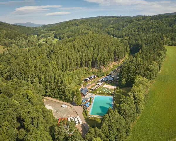 Ubicada en el corazón de la República Checa, esta casa de vacaciones es un bungalow independiente que forma parte de un complejo de 7 casas situado en una posición tranquila y soleada a 50 m del borde del bosque y a 2 km de la zona de esquí más cercana. La propiedad se encuentra en la región de Dvůr Králové Nad Labem y ofrece un refugio apacible para quienes buscan belleza natural y acceso fácil a actividades al aire libre durante todas las estaciones. El bungalow destaca por su ubicación particular dentro del complejo, posicionado fuera del área principal en un entorno especialmente tranquilo y soleado.