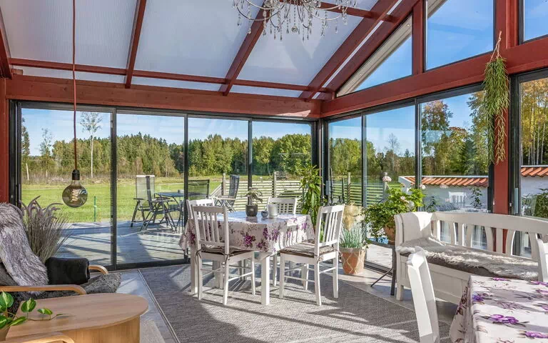"Villa Blommelund", casa 3 estancias 105 m2. Luminoso, con mobiliario moderno: salón-comedor abierto con 1 sofá-cama doble (160 cm, 200 cm de longitud), chiminea nórdica, mesa de comedor y TV. Salida al balcón acristalado. 1 dorm. doble con 1 cama doble (160 cm, 200 cm de longitud). Rincón-dormitorio abierto con 1 cama (120 cm, 200 cm de longitud), 1 x 1 literas (90 cm, 200 cm de longitud), 1 posibilidad para dormir (80 cm, 200 cm de longitud). Cocina abierta (horno, lavavajillas, 4 placas de vitrocerámica, tostadora, hervidor de agua eléctrico, microondas, congelador, cafetera eléctrica). Ducha/WC. Calefacción. Suelo de parquet. Terraza grande 50 m2. Muebles de terraza, barbacoa, invernadero, rincón para sentarse. Vista panorámica bonita al paisaje. El alojamiento dispone de: lavadora, secadora, trona, cuna. A tener en cuenta: casa para no fumadores. SE44807