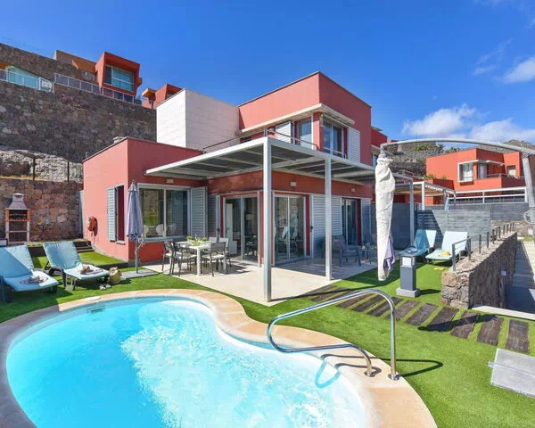 La villa "Vista Golf 5" se encuentra en las afueras de Maspalomas, en el sur de España, en un entorno tranquilo y apartado. Esta propiedad moderna y confortable ha sido diseñada para combinar el confort contemporáneo con la belleza natural de sus alrededores. La villa cuenta con un jardín privado vallado con césped bien mantenido que proporciona privacidad durante la estancia. Una piscina de forma arriñonada está disponible durante todo el año, del 1 de enero al 31 de diciembre.