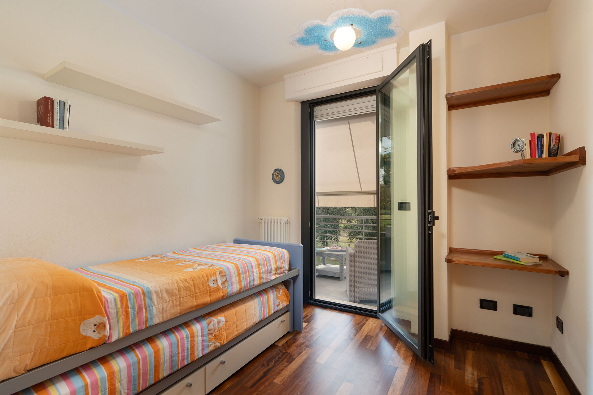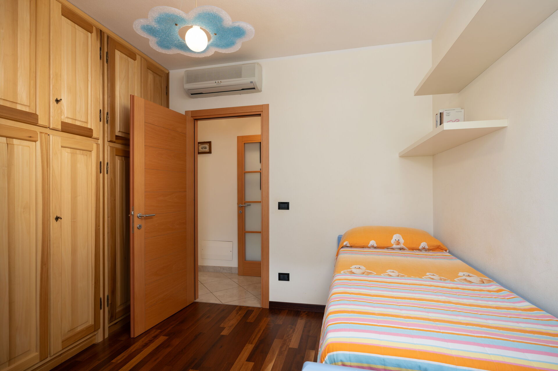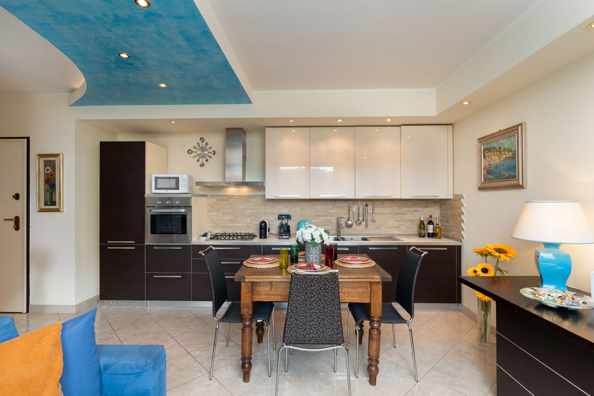 Cocina-salón: cocina bien equipada, mesa de comedor, lavavajillas, frigorífico, congelador, microondas, cocina de gas, horno, tostadora, plancha, máquina de café italiana, lavadora, sofa, WIFI internet, aire acondicionado, tv vía satélite, detector de humo, acceso al balcón.