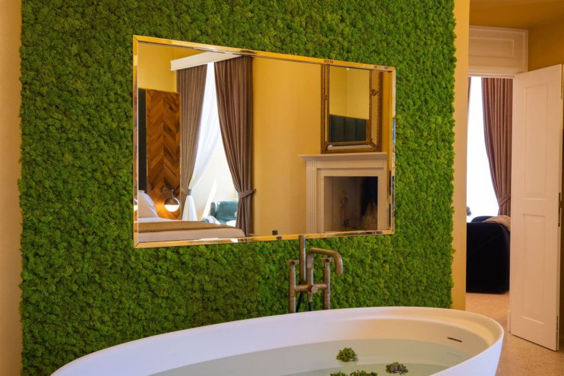 Baronale: Elegant room of 35 sqm with ensuite bathroom, fireplace and bathtub.