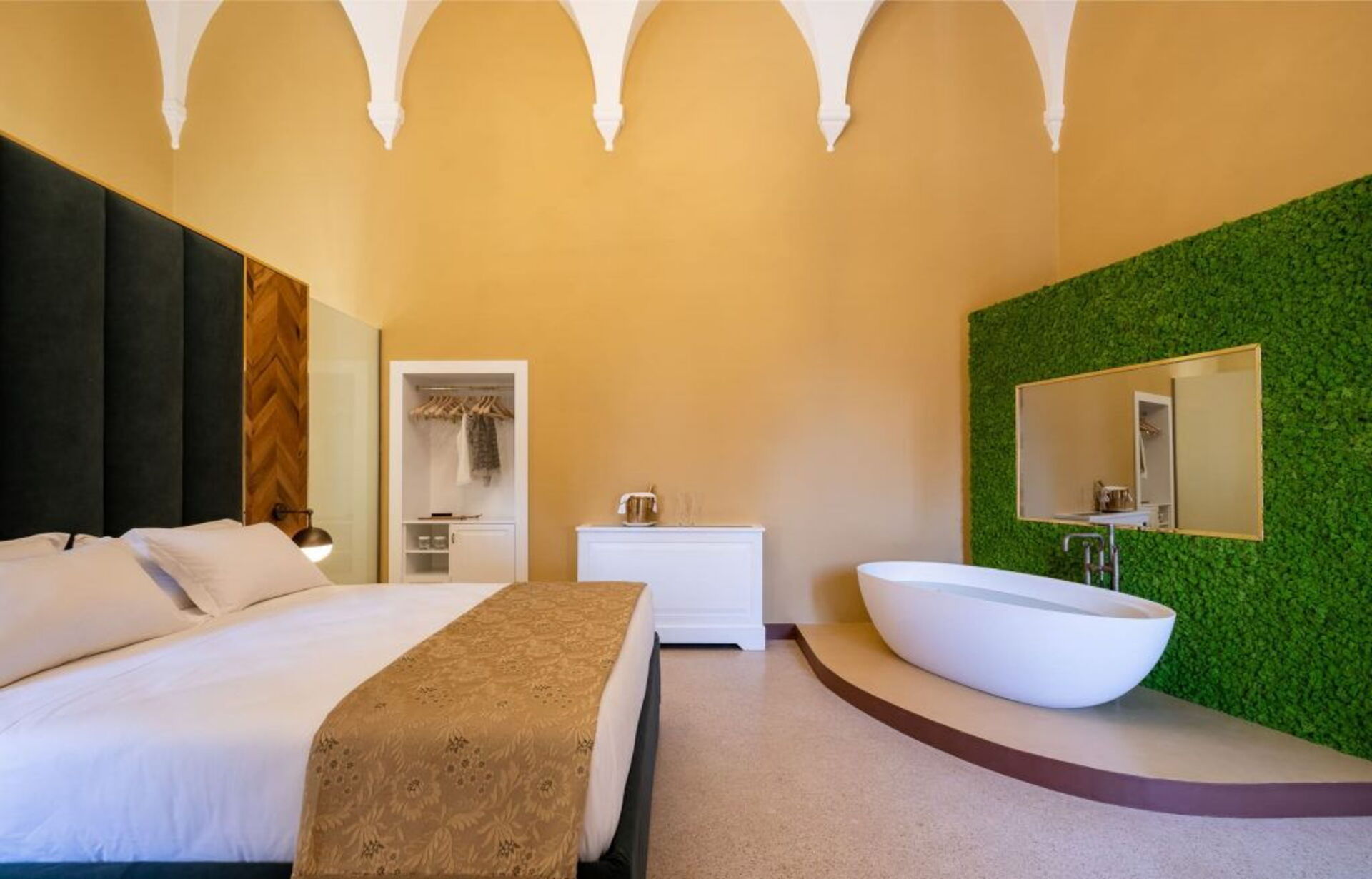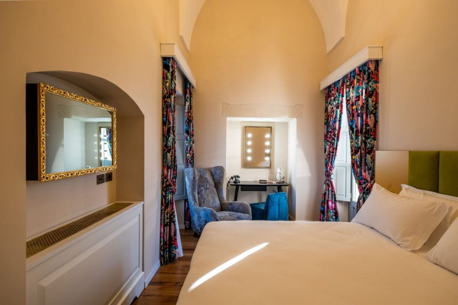 Oleum: Elegant room of 25 sqm with ensuite bathroom and typical star vaults.