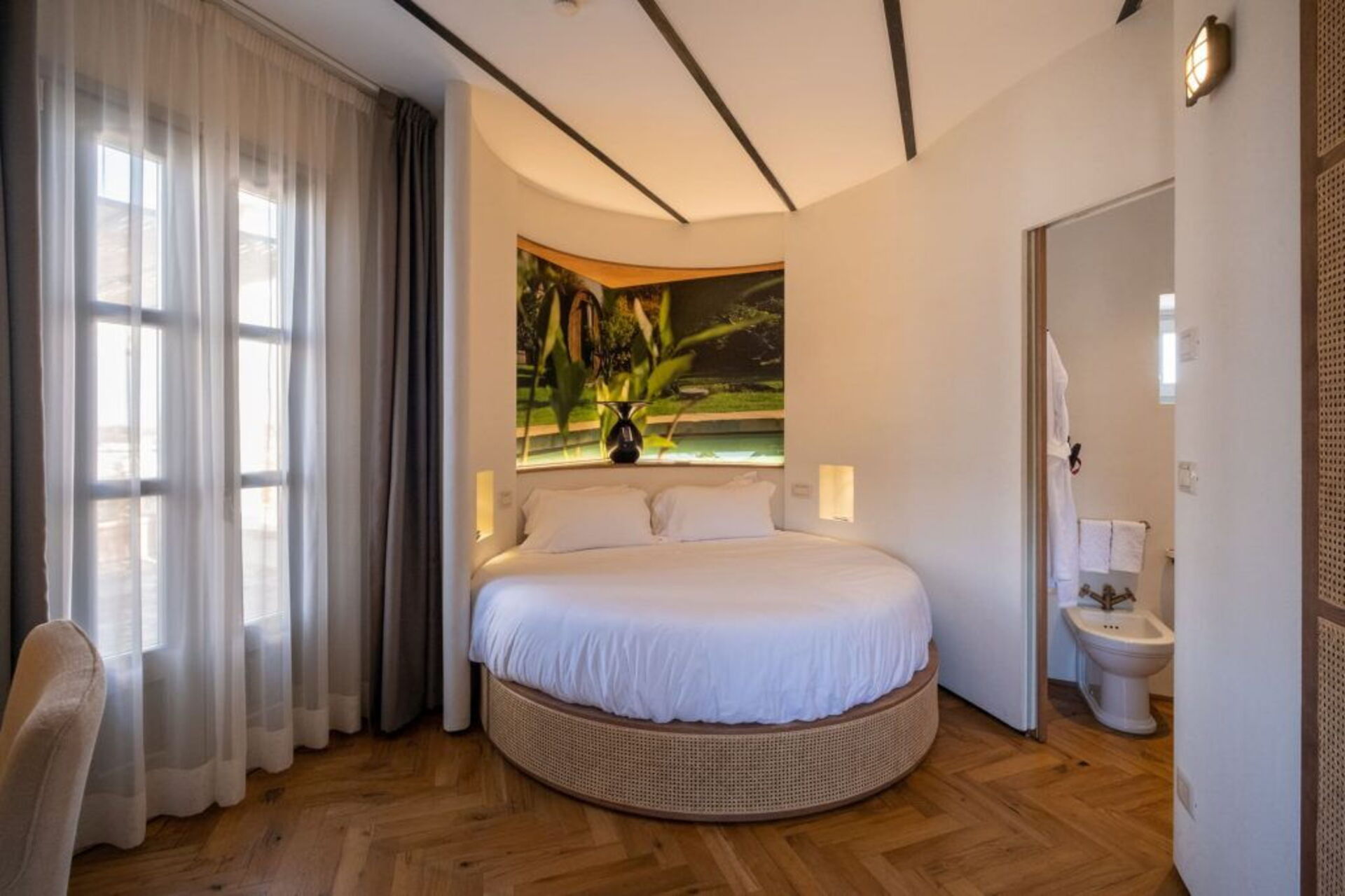 Nido: Elegant room of 15 sqm with ensuite bathroom and panoramic terrace of 100 sqm equipped with sofas, beds and a sinuous stone bath for moments of intimate well-being.