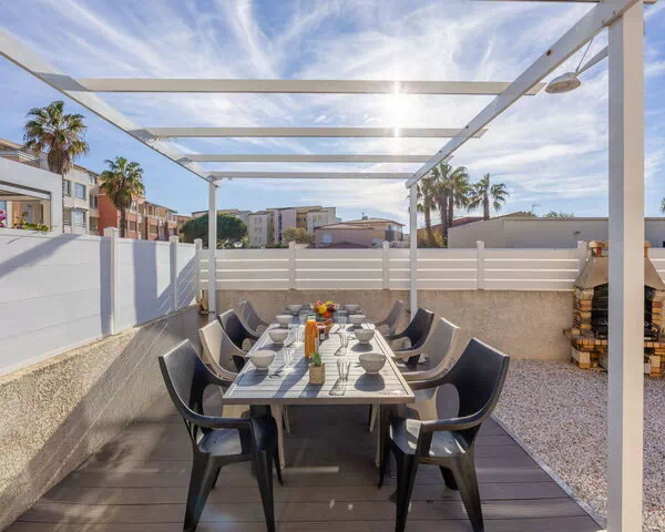 "Rochelongue" es una casa de vacaciones de 3 plantas situada en un tranquilo barrio residencial de Agde, Francia. Con una superficie de 94 m2, la propiedad se encuentra completamente vallada y ofrece privacidad y seguridad durante toda la estancia. A tan solo 300 m del mar, esta casa bien equipada representa un refugio refinado y apacible. Un jardín privado bien mantenido añade encanto natural a los alrededores, proporcionando un espacio exterior sereno para disfrutar.