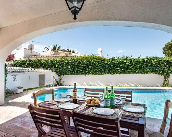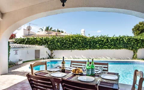 Oura-Albufeira Strip: Villa "Libertos V4 - VIP Properties", muy agradable. En las afueras de la localidad, a 5 km del centro de Albufeira, area residencial (villas), a 700 m del mar. Privado: jardín flores y árboles, piscina rectangular (4 x 9 m, 90 - 180 cm de profundidad, Disponible por temporada: 01.Ene. - 31.Dic.). En el inmueble: Wifi, aire acondicionado, lavadora. Tienda, tienda de comestibles 750 m, supermercado 1 km, centro comercial 1.3 km, restaurante 140 m, bar 15 m, panadería 600 m, café 190 m, parada autobús 400 m, playa de arena "Praia da Oura" 750 m. Puerto para yates 6.3 km, campo de golf (18 hoyos) 6.7 km, escuela de surf 2.4 km, tenis 1.6 km, centro ecuestre 10.1 km. Atracciones en los alrededores: Zoomarine 12 km, Krazy World 17 km, Aqualand 20 km, Sand City 23 km, Faro Airport 41 km, Aquashow 19 km. A tener en cuenta: coche recomendable. Grupos de jóvenes sólo bajo petición. Carga y descarga de equipaje posible en la casa de vacaciones. Los grupos de jóvenes menores de 25 años deberán abonar un depósito adicional por persona en el momento de la llegada. El servicio de calefacción de la piscina (20ºC-22ºC) debe ser comunicado al KH una semana antes de su llegada y pagado in situ. Después de 7 noches extra 50€ por día para la calefacción de la piscina.