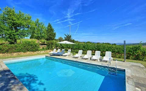 La casa de vacaciones "I Tre Laghi" se encuentra en el corazón de la campiña toscana de Pergine Valdarno, Italia, rodeada de colinas ondulantes y paisajes abiertos que caracterizan esta región celebrada. La propiedad ocupa una posición elevada y tranquila en medio de la naturaleza, dentro de un jardín privado cercado de 500 metros cuadrados que proporciona un entorno exterior íntimo y seguro. Una piscina privada de 5 x 10 metros con profundidad de 140 cm está disponible del 4 de mayo al 4 de octubre. Se accede a la casa a través de un camino sin asfaltar de 1 km, lo que añade una sensación de aislamiento y exclusividad a la propiedad.