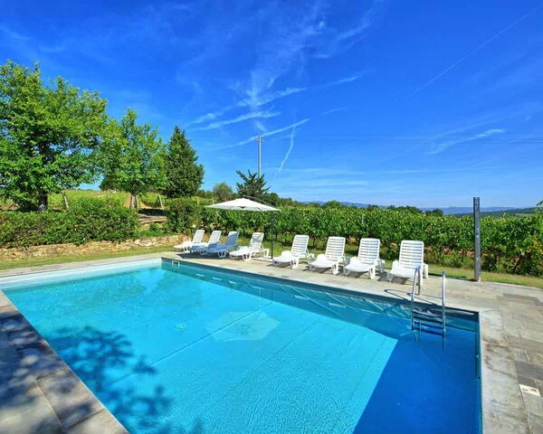 El jardín privado cercado se extiende sobre 500 metros cuadrados, ofreciendo amplio espacio para el descanso, el asoleamiento y las comidas al aire libre en completa privacidad. La piscina mide 5 x 10 metros con profundidad de 140 cm y está disponible del 4 de mayo al 4 de octubre; es mantenida regularmente por el jardinero del propietario. Una ducha exterior se encuentra ubicada cerca de la piscina. El área de barbacoa y mobiliario de jardín crea un espacio acogedor para las comidas al aire libre durante las tardes toscanas; una mesa de ping-pong añade una dimensión recreativa a los espacios exteriores.