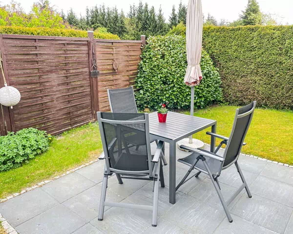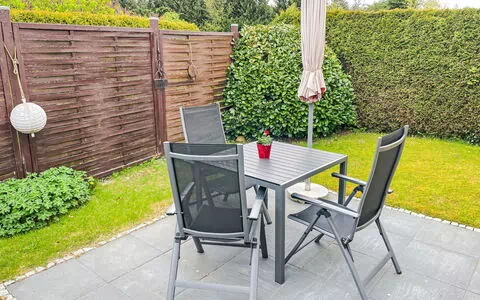 La propiedad se sitúa en un entorno tranquilo en las afueras de Zinnowitz, rodeada por el carácter natural de la región. El ambiente exterior proporciona una atmósfera agradable para el descanso, con el aire fresco de la costa que caracteriza el área.
