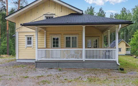 Esta villa de troncos cepillados se encuentra en las orillas tranquilas del lago Haapijärvi en Onnenkoski, aproximadamente 22 km de Pori y 270 km al noroeste de Helsinki, Finlandia. Construida entre 2007 y 2008, la villa abarca 100 m² y combina la artesanía finlandesa tradicional con el confort moderno. La planta baja alberga una sala de estar generosamente proporcionada y un área de cocina con un techo alto y luminoso, ideal para reuniones de grupo, junto con 2 dormitorios, una sauna eléctrica y un cuarto de baño con WC. La planta superior cuenta con un loft espacioso dividido en 2 zonas, cada una con capacidad para 3 camas. La villa tiene capacidad para un máximo de 8 huéspedes.