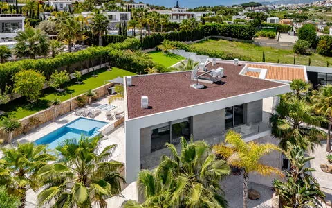 Villa "Eos", muy amplia, moderna, lujosa de 3 plantas. En el barrio de Cansalades Park Monte Olimpo, a 5 km del centro de Jávea - El Arenal, a 8 km del centro de Moraira, lugar tranquilo, soleado, a 5 km del mar, a 5 km de la playa. Privado: jardín en diferentes niveles grande, bonito, cuidado con césped y plantas, estanque, piscina rectangular, occulta desde el exterior (10 x 4 m, 40 - 180 cm de profundidad, Disponible por temporada: 01.Ene. - 31.Dic.) con escalera interior. Ducha exterior, piscina de hidromasaje, terraza-jardín, porche, muebles de jardín, barbacoa. En el inmueble: calefacción central, aire acondicionado, alarma. Aparcamiento (para 2 coches, cubierto) en el mismo terreno. Supermercado 2.5 km, restaurante 1 km, bar 2.5 km, panadería 2.5 km, café 2.5 km, parada autobús 5 km, playa de arena "El Arenal" 5 km, playa de piedras "La Granadella" 10 km. Puerto deportivo 6 km, puerto para yates 6 km, campo de golf (9 hoyos) 3 km, escuela de surf 5 km, escuela de vela 5 km. A tener en cuenta: coche recomendable. El propietario no acepta grupos de adolescentes/jóvenes. La Villa cuenta con una segunda piscina calentada interior. Medidas 4x2 con salida a terraza.