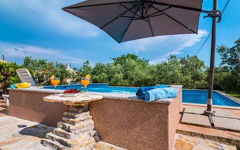 Casa "Marija", rodeada de campos. Lugar tranquilo, soleado, a 3.6 km del mar, a 3.6 km de la playa. Privado: terreno 4'000 m2 (vallada), piscina rectangular, climatizada (55 m2, Disponible por temporada: 01.May. - 15.Oct.). Ducha exterior, mantenimiento de la piscina a través del propietario/jardinero. En el inmueble: acceso a internet, sauna, calefacción central, lavadora. Aparcamiento junto a la casa en el mismo terreno. Supermercado 1.6 km, parada autobús 1.2 km, estación de tren 2.3 km, playa de gravilla 3.6 km. A tener en cuenta: aeropuerto 6 km de la casa.