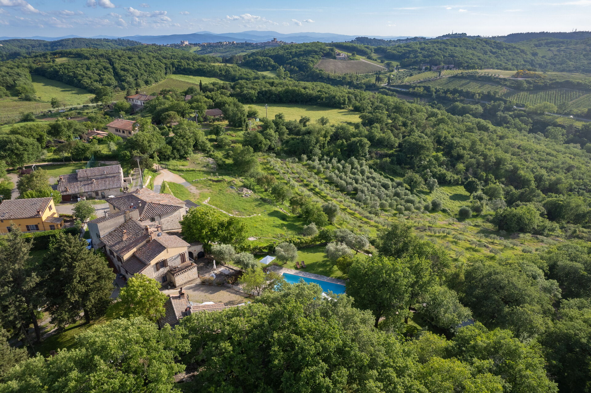 La mayoría de la gente de vacaciones quiere visitar a ciudades y pueblos en las cercanías, para su información esta es una lista de lugares conocidos con distancias (en linea recta) en coche de la propiedad: Greve In Chianti 19 km, Siena 26 km, San Gimignano 32 km, Florencia 48 km y Montalcino 68 km.