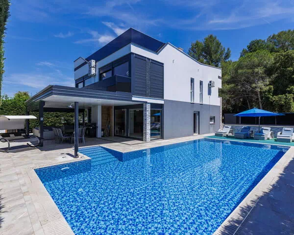 Villa "Rial 1" se encuentra en la localidad costera de Fažana, Croacia, y es una elegante casa de vacaciones de dos plantas que aloja hasta 8 adultos y 2 niños. La propiedad está ubicada en una parcela privada completamente vallada de 400 metros cuadrados, a tan solo 500 metros del centro de la localidad. La villa combina confort, privacidad y una ubicación privilegiada en la costa adriática.