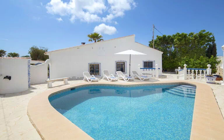 Cometa I a 2 km de Calpe: Villa "Irene", agradable. En la localidad, a 3 km del centro de Calpe, en el distrito Partida Cometa I, lugar soleado, a 2.2 km del mar, a 2.2 km de la playa. Privado: terreno 607 m2 (vallada), piscina en forma de riñon (4 x 6 m, 150 - 180 cm de profundidad, Disponible por temporada: 01.Ene. - 31.Dic.) con escalera interior. Ducha exterior, Aparcamiento (para 2 coches, cubierto). Supermercado 1.8 km, restaurante 1.4 km, bar 1.4 km, parada autobús "Parada Bus" 850 m, playa de arena "Playa de La Fossa" 2.2 km. Puerto deportivo 3.3 km, puerto para yates 3.3 km, escuela de vela 3.3 km. Atracciones en los alrededores: Aqualandia 25 km, Terra Mitica 35 km. Zona de senderismo Salinas de Calpe 2 km, Peñón de Ifach 2 km.