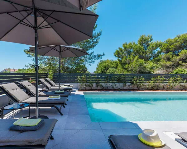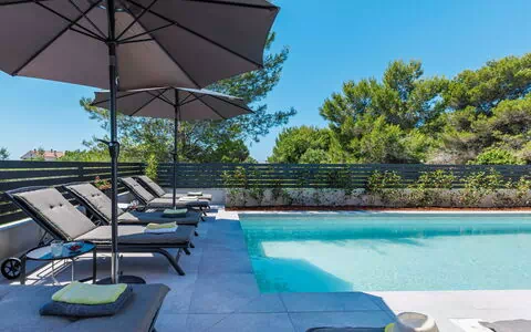 Villa "David", moderna de 2 plantas. A 2 km del centro de Medulin, a 12 km del centro de Pula, lugar tranquilo, soleado, elevado, a 1.5 km del mar, a 1.5 km de la playa. Privado: terreno 700 m2, jardín con césped y plantas, piscina rectangular, climatizada (13 x 4 m, 140 cm de profundidad, Disponible por temporada: 01.Abr. - 15.Nov.) con escalera interior y sistema de limpieza por electrolysis de sal. Ducha exterior, barbacoa, mantenimiento de la piscina a través del propietario/jardinero. En el inmueble: acceso a internet, sauna, bañera de hidromasaje, aire acondicionado, lavadora. Aparcamiento (para 3 coches) junto a la casa en el mismo terreno. Tienda 1.5 km, supermercado 2 km, restaurante 500 m, parada autobús 800 m, playa de arena "Bijeca" 2 km playa de gravilla 1.5 km, playa rocosa 1.5 km, zona para bañarse 1.5 km. Escuela de surf 1 km, tenis 1 km, centro ecuestre 500 m, rutas de senderismo desde la casa 100 m, caminos para bicicletas 150 m. Atracciones en los alrededores: Amphitheater 12 km. Piscina climatizada (extra). Hay que avisar con 7 días de antelación si quiere la piscina climatizada. Videovigilancia en la propiedad.