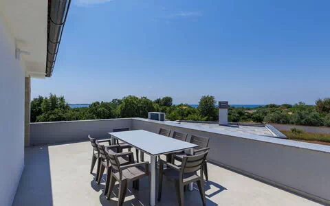 La villa "Kliska" es una elegante casa de vacaciones de 2 plantas ubicada en la pintoresca localidad costera de Peroj, Croacia. Emplazada en una propiedad privada completamente vallada de 526 metros cuadrados, la villa se sitúa en un entorno tranquilo y soleado, a 3,5 km del centro de Fažana y a 600 metros del mar. La casa ofrece un retiro refinado y sereno para quienes buscan una experiencia auténtica de Istria. El terreno cuenta con un césped bien cuidado y un jardín silvestre que crean un ambiente natural apacible.