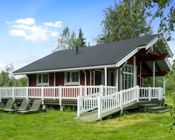 Mansikkaranta 3 es una cabaña parcialmente accesible con comodidades modernas. Está situada tranquilamente a orillas del hermoso lago Pyhäjärvi, cerca de los servicios de Pyhäsalmi. La cabaña está situada en una parcela llana y cubierta de hierba cerca de la orilla. Sólo hay 10 metros desde la cabaña hasta la orilla del lago Pyhäjärvi, donde hay una playa poco profunda con fondo de arena y ocasionalmente algo de hierba. Hay un embarcadero en la playa con escalones de metal que conducen al agua. También se puede utilizar una barca de remos. Una cabaña de cocina privada, reservada exclusivamente para esta cabaña, ofrece un lugar excelente para pasar las tardes disfrutando de la compañía de los demás y asando deliciosa comida junto a una hermosa vista del lago. La cabaña dispone de rampas para sillas de ruedas en la entrada y la terraza. La anchura de las puertas exteriores e interiores es suficiente para una silla de ruedas. Sin embargo, hay umbrales bajos en las entradas y en las puertas de la zona de la sauna. La encimera de la cocina y la mesa de comedor de la cabaña son más bajas de lo habitual. La cabaña de madera incluye los siguientes espacios: Salón/cocina: El corazón de la cabaña, donde podrá pasar tiempo con la familia y los amigos, disfrutando de un ambiente acogedor. Dormitorio: Un dormitorio con dos camas separadas unidas (se pueden separar si es necesario). Loft: El loft tiene dos camas bajas. El altillo tiene una altura máxima de 1,7 metros y escaleras empinadas, por lo que es más adecuado para niños o adultos jóvenes. Sauna y lavadero: La zona de sauna de la cabaña incluye una sauna eléctrica y un amplio lavadero. El lavadero también dispone de lavadora. Terraza: Una terraza cubierta junto al lago ofrece un lugar agradable para disfrutar de las vistas al lago y refrescarse con el aire fresco del exterior. Se puede acceder a la terraza directamente desde el lavadero. La cocina, además de otras comodidades mencionadas, incluye dos fogones y un horno independiente para cocinar. La cabaña se construyó en 2004. Se encuentra en una zona de cabañas con un total de tres cabañas. La zona también cuenta con una sauna junto al lago calentada con leña y una sauna de humo, cuyo uso se puede acordar con el propietario por un cargo adicional. La sauna de humo se encuentra cerca de la cabaña de cocina reservada para esta cabaña. La cabaña se encuentra en un lugar tranquilo, pero cerca de los servicios de Pyhäsalmi, por lo que es conveniente para cuidar de las necesidades diarias. Los alrededores ofrecen mucho que ver y hacer, con oportunidades para diversas actividades en la naturaleza, así como atracciones locales. Lugares de interés cercanos: Vaskikellot Bell Collection/Café-Restaurant 4,8 km, estación de servicio ABC 4,8 km, bolera 700 m, piscina 1 km, campo de golf 6 km, pista de esquí iluminada 2 km (5 km de largo). Centro deportivo y natural de Honkavuori - 10 km. Honkavuori ofrece excelentes oportunidades deportivas y recreativas durante todo el año, incluidos senderos al aire libre, golf Frisbee, pistas de esquí de fondo, una zona de esquí, saltos y colinas para trineos y una torre de observación de la naturaleza.