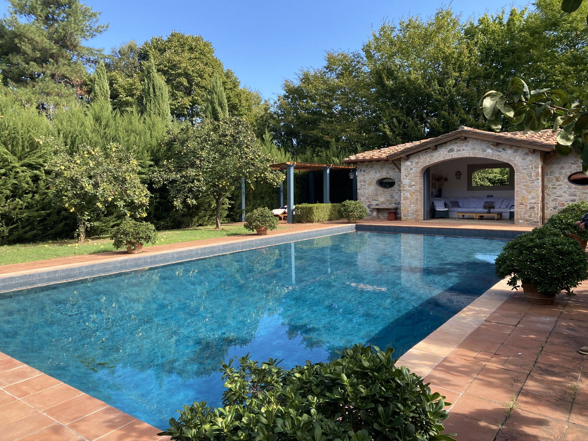 Después de llegar encontrará una estupenda propiedad limpia y acogedora con vista las colinas ideal para unas vacaciones relajadas en Toscana. Para su disfrute encontrará jardín privado donde puede relajarse gustandose un buen refresco después un día pasado museos.Uno de los beneficios de estar en una casa de vacaciones sino que en hoteles, es la posibilidad de relajarse tras un largo día de visitas con la familia y los amigos. Al anochecer sigue disfrutando con una buena comida y un buen vino local. Afuera encontrará patio, cancha de tenis y barbacoa. Cenar con familia y amigos es un aspecto de gran importancia en la cultura toscana. Aproveche de una cocina bien equipada para preparar comidas utilizando productos locales durante sus vacaciones. La cocina incluye cafetera, toaster, estufas y nevera, además de, muchas vajillas y cubiertos para hasta diez personas. Come 'al fresco' como un local, la veranda es el lugar perfecta para disfrutar de la comida, la compañía y el estupendo clima toscano.