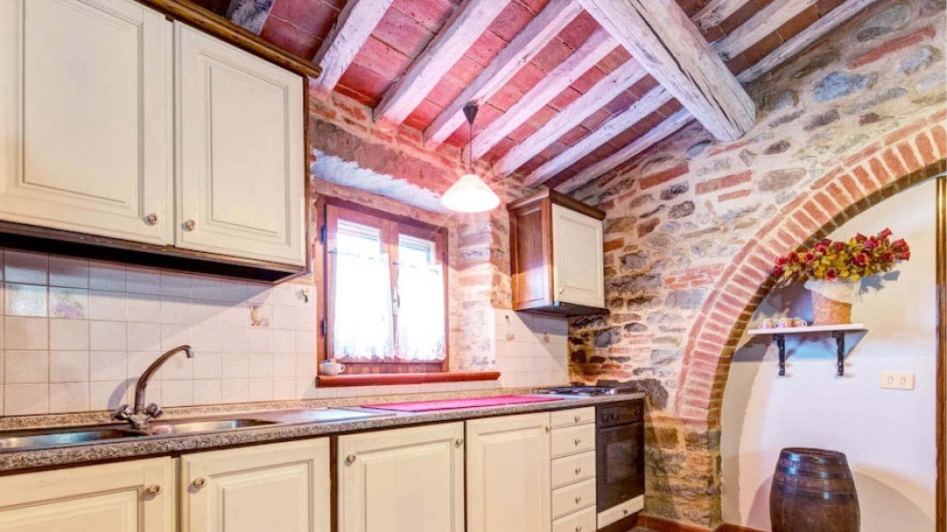Esta encantadora villa vacacional en la antigua aldea rural de Fratticiola ofrece un refugio excepcional para grupos que buscan la auténtica belleza de Cortona, Italia. Ubicada entre campos dorados de girasoles y trigo en una posición tranquila y panorámica, esta residencia independiente aloja a los huéspedes en 7 apartamentos en el edificio principal y 1 apartamento en la dependencia. Tras una reciente y meticulosa renovación, la casa rural se ha transformado en cómodas unidades independientes preservando sus acogedores espacios comunes. La propiedad cuenta con piscina privada, amplias zonas ajardinadas y abundante aparcamiento para su comodidad. Internet Wi-Fi está disponible en toda la residencia, asegurando que permanezca conectado durante su estancia. Aunque cada apartamento dispone de su propia cocina americana para uso limitado, el verdadero corazón del hogar sigue siendo la Cocina Principal, un espacio completamente equipado con moderna placa de inducción ubicado en la planta baja junto al amplio salón. Una sala común con sofás, zona de comedor y dos baños proporciona espacio adicional de reunión para que todos los huéspedes disfruten juntos.