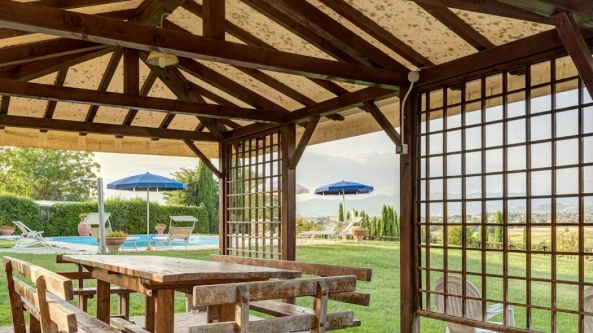 La propiedad está rodeada por un amplio jardín privado que captura la esencia de la campiña toscana, ofreciendo amplias vistas panorámicas del paisaje circundante. La piscina está disponible para su disfrute desde el 12 de abril hasta el 7 de octubre, con disponibilidad posterior bajo petición. Los espacios exteriores están diseñados para la relajación y las comidas al aire libre, con una zona de barbacoa donde puede preparar comidas mientras contempla las impresionantes vistas. Los extensos terrenos proporcionan amplio espacio para actividades al aire libre y paseos tranquilos por el jardín. Hay bicicletas disponibles en la propiedad, permitiéndole explorar los pintorescos caminos rurales y descubrir la belleza de los alrededores a su propio ritmo. El entorno tranquilo entre campos de trigo dorado y vibrantes girasoles crea un telón de fondo idílico para sus vacaciones.