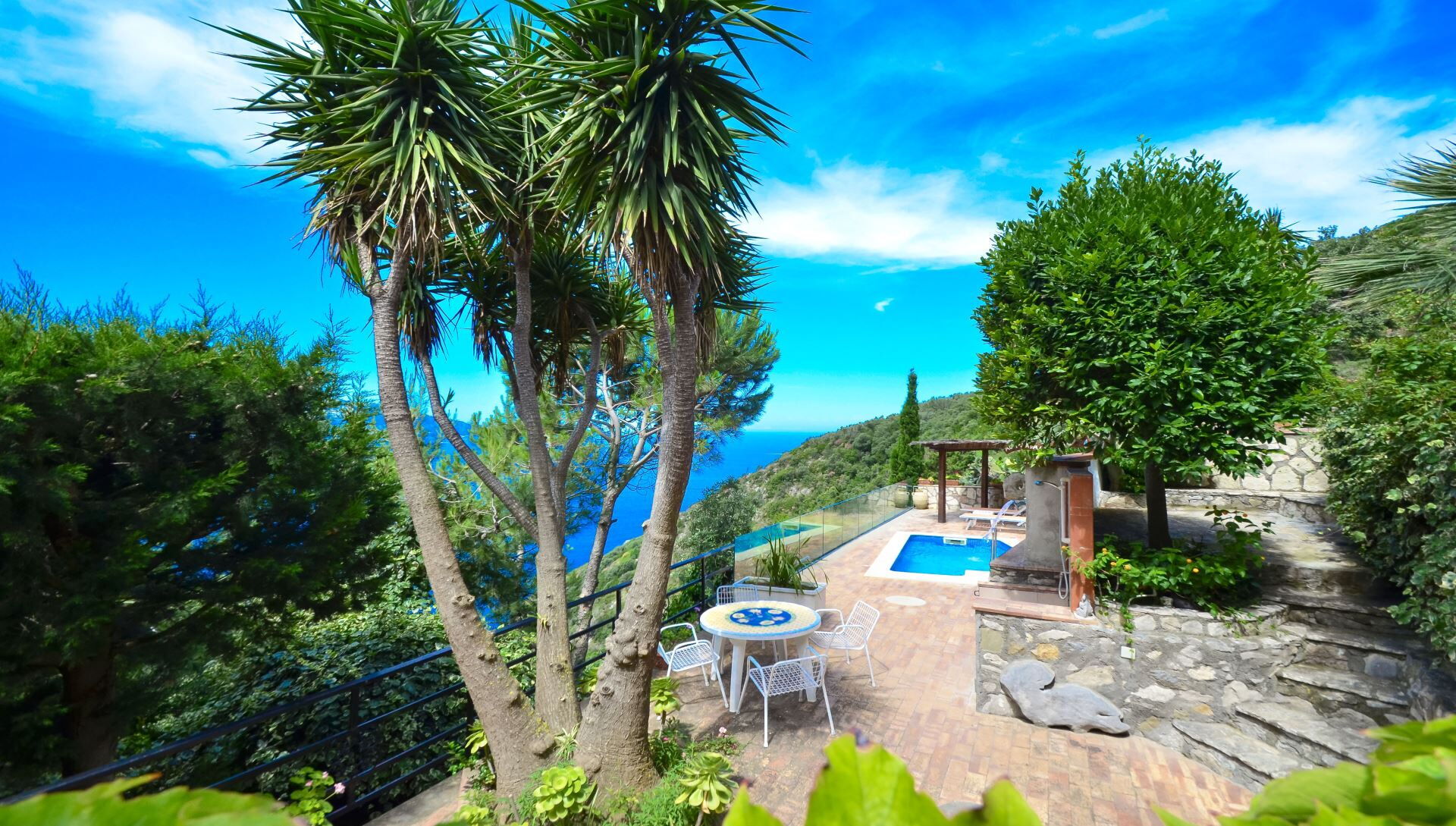 El jardín privado se extiende a lo largo de 300 metros cuadrados y está completamente vallado, ofreciéndole un espacio exterior seguro e íntimo adornado con olivos y una variedad de otras plantas mediterráneas. Dentro del jardín, usted encontrará una zona de barbacoa con una barbacoa tradicional de piedra y una mesa de comedor con sillas para 6 personas, perfecta para comidas al aire libre mientras disfruta de las espectaculares vistas al mar y a la isla de Capri. La piscina privada mide 2x5 metros con una profundidad de 2,5 metros e incluye un atractivo jacuzzi, abierta desde mayo hasta finales de octubre. La zona de la piscina está equipada con tumbonas y una mesa con sillas, y está parcialmente sombreada por un encantador techo de bambú, proporcionando espacios cómodos para relajarse mientras contempla las impresionantes vistas costeras. Usted accederá a la piscina desde la terraza descendiendo 3 pequeños escalones. La terraza principal está amueblada con una mesa y sillas y cuenta con un horno de pizza de leña, y usted accederá a esta terraza directamente desde el salón, creando una experiencia de vida interior-exterior sin interrupciones.