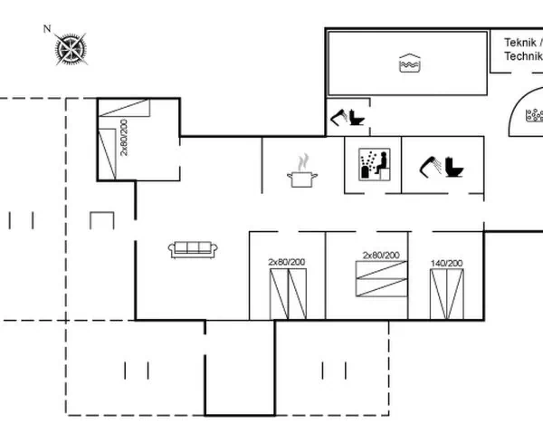 Casa unifamiliar del año 1985. A 300 m del mar. Privado: terreno 1'012 m2, jardín, cuidado, piscina cubierta (3 x 5 m, 15 m2, 120 - 120 cm de profundidad). Barbacoa, parque infantil (columpio). En el inmueble: sauna, lavadora, secadora. Aparcamiento junto a la casa. Tienda de comestibles 6.7 km. Campo de golf 7.5 km. El propietario no acepta grupos de adolescentes/jóvenes.