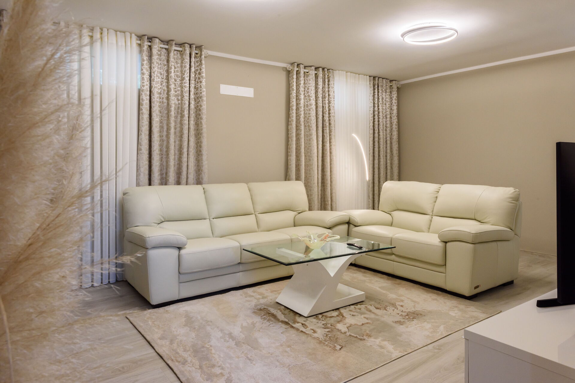 Salón: dos sofas, WIFI internet, aire acondicionado, televisión, mosquitero.
