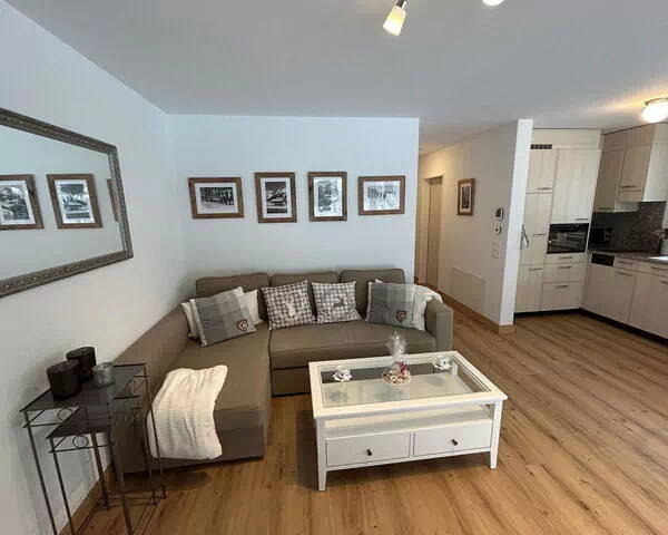 55 m2. Más información del proveedor: Very bright 2 room apartment, freshly renovated fall 2024 (all walls, floors, new bathroom and new bedroom furnishings) on the first floor of an apartment building with 6 apartments in the quiet Oberberg quarter. 2-3 minutes walk from the Langacher winter bus station. A 15-20 minute walk from the village (flat). Large garden seating area on 2 sides of the house with table and chairs. Entrée with large wardrobe. Bright, cozy living-dining room with sofa bed (140 cm), TV, Wifi and open kitchen with dishwasher, Delizio coffee machine, kettle, egg stove, microwave, raclette and fondue set. Large bedroom with wide bed (180 cm, 2 mattresses). New, modern bathroom with walk-in shower and additional rain shower. Hair dryer. Indoor parking with garage space and ski storage room. Bicycle parking. Outside parking lot. Washing machine and tumble dryer available. Strictly NON-SMOKING-APARTMENT. No pets allowed.