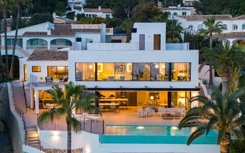 Villa "Cabo de Gata", muy moderna, bonita de 3 plantas. A 3 km del centro de Moraira, a 11 km del centro de Calpe, lugar tranquilo, soleado area residencial (villas), zona con poco tráfico, a 150 m del mar, a 150 m de la playa. Privado: terreno (vallada), jardín, cuidado, piscina (9 x 4 m, Disponible por temporada: 01.Ene. - 31.Dic.). Ducha exterior, terraza, muebles de jardín, barbacoa. En el inmueble: azotea, lavadora, secadora. Aparcamiento en el mismo terreno. Tienda de comestibles, supermercado 750 m, restaurante 650 m, parada autobús 750 m, playa de arena "Playa L'Ampolla" 3 km, playa rocosa "Cala Punta Estrella", cala para bañarse 140 m. Puerto deportivo 4 km, puerto para yates 4 km, campo de golf (18 hoyos) 2 km. Atracciones en los alrededores: Aqualandia, Mundomar, Terra Mítica, Terra Natura, Benidorm Palace (Benidorm), Les Fonts de l'Algar, Castillo de Guadalest. A tener en cuenta: adecuado para familias. El propietario no acepta grupos de adolescentes/jóvenes.