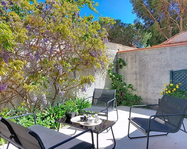 El primer dormitorio alberga una cama francesa de 180 cm de ancho y 200 cm de largo, con acceso directo a una terraza orientada al este. El segundo dormitorio contiene 2 camas individuales de 80 cm de ancho y 190 cm de largo cada una, con vistas al patio y acceso a terraza orientada al este. El baño está equipado con ducha, bidé y WC independiente.