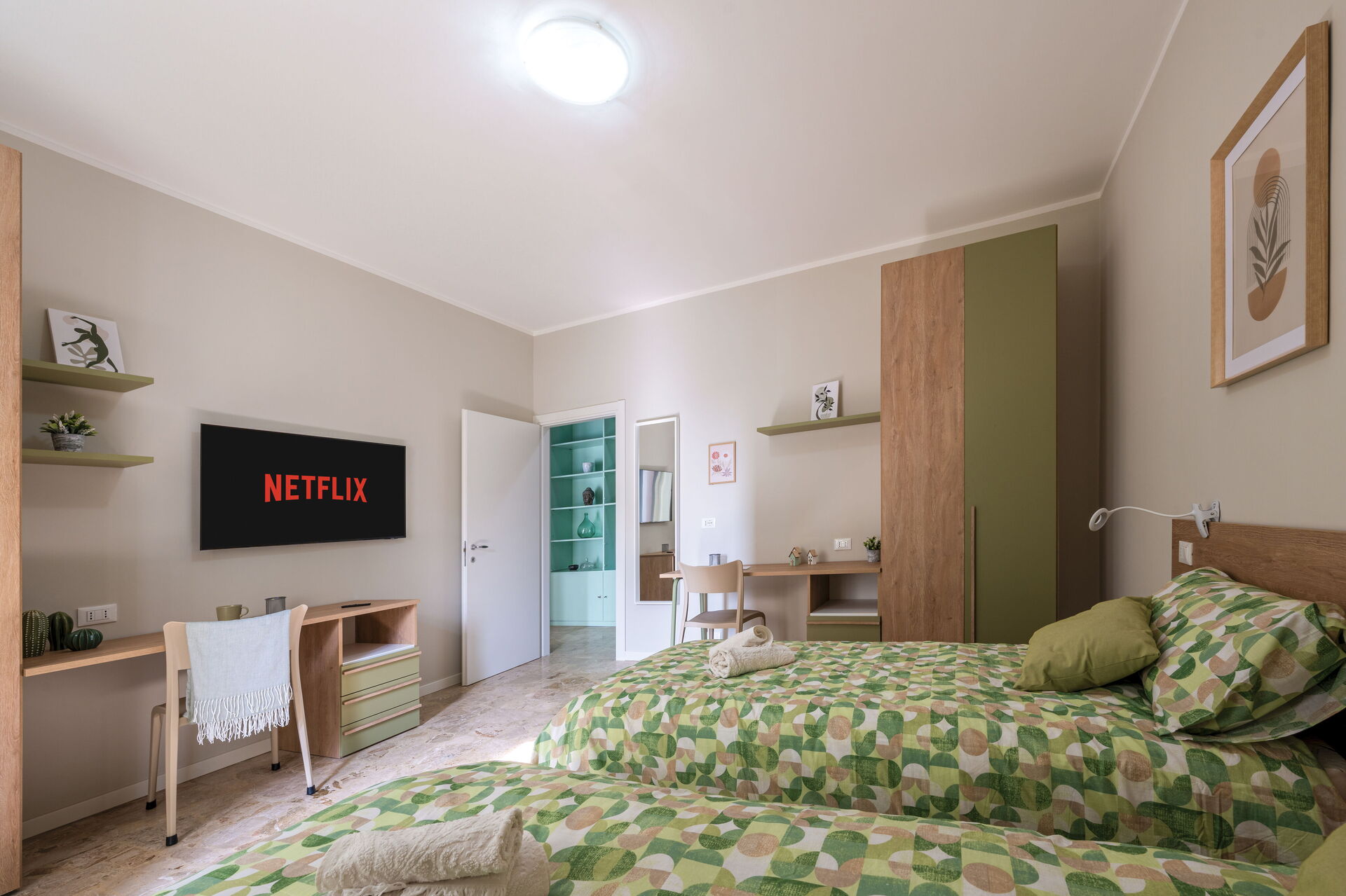 Habitación 2: dos camas individuales, WIFI internet, aire acondicionado, mosquitero, tv vía satélite.