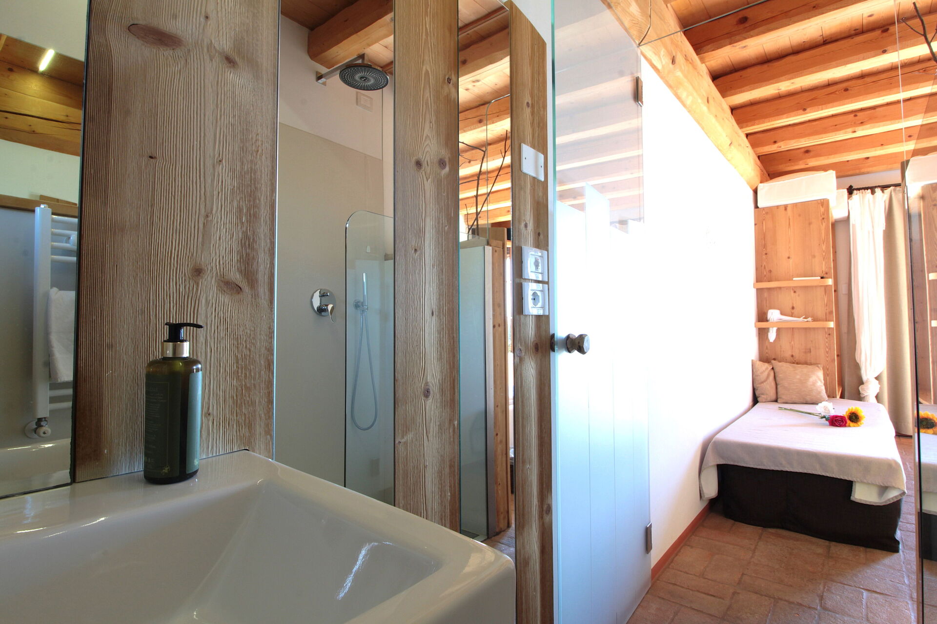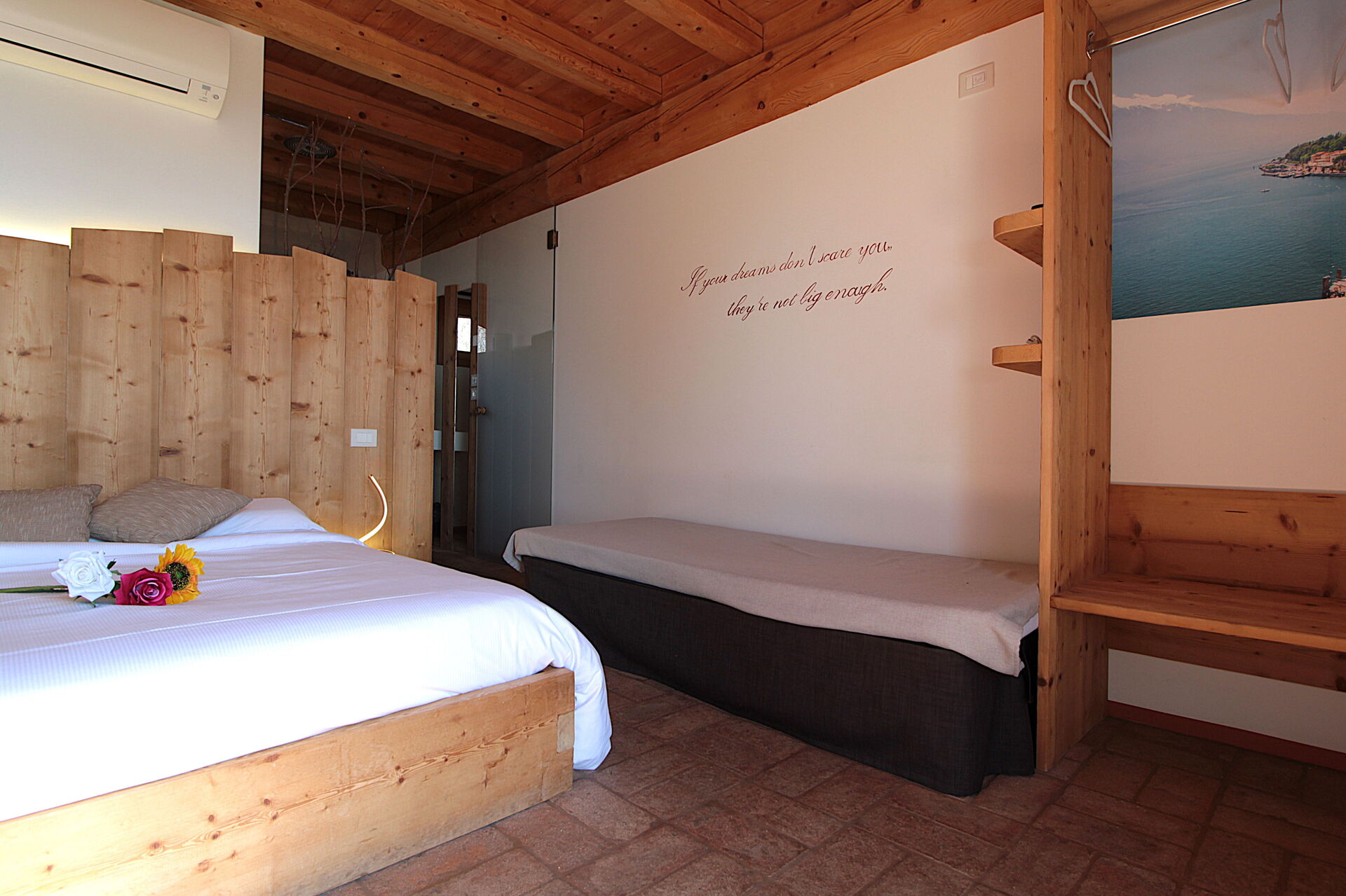 Habitación con baño 4: cama doble, cama individual, WIFI internet, aire acondicionado, televisión, lavabo, baño, bidé, ducha.