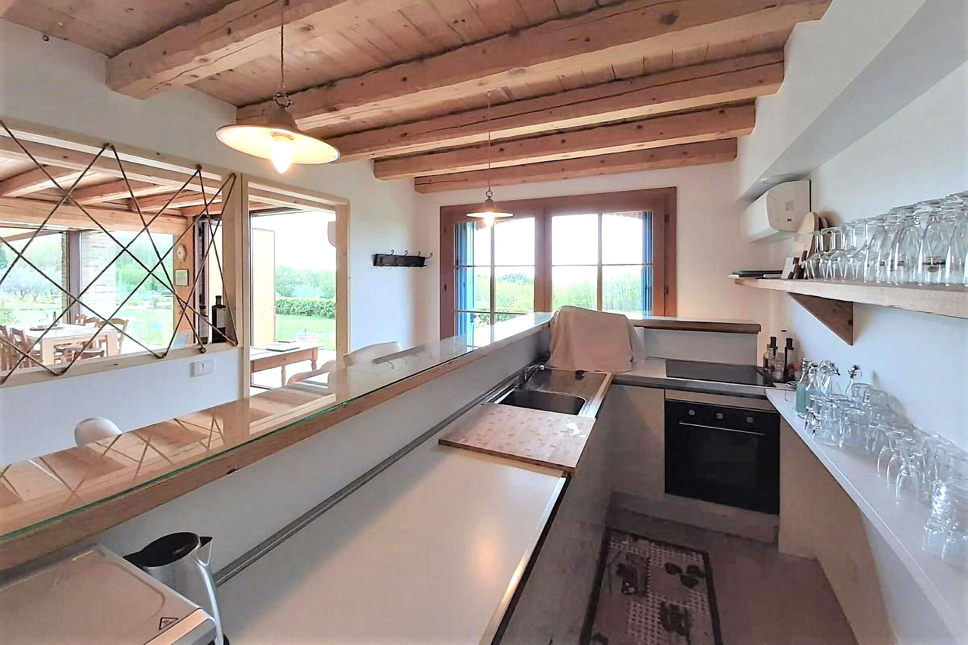 Cocina: cocina bien equipada, lavavajillas, frigorífico, congelador, cocina de gas, horno, máquina de café italiana, WIFI internet, aire acondicionado.