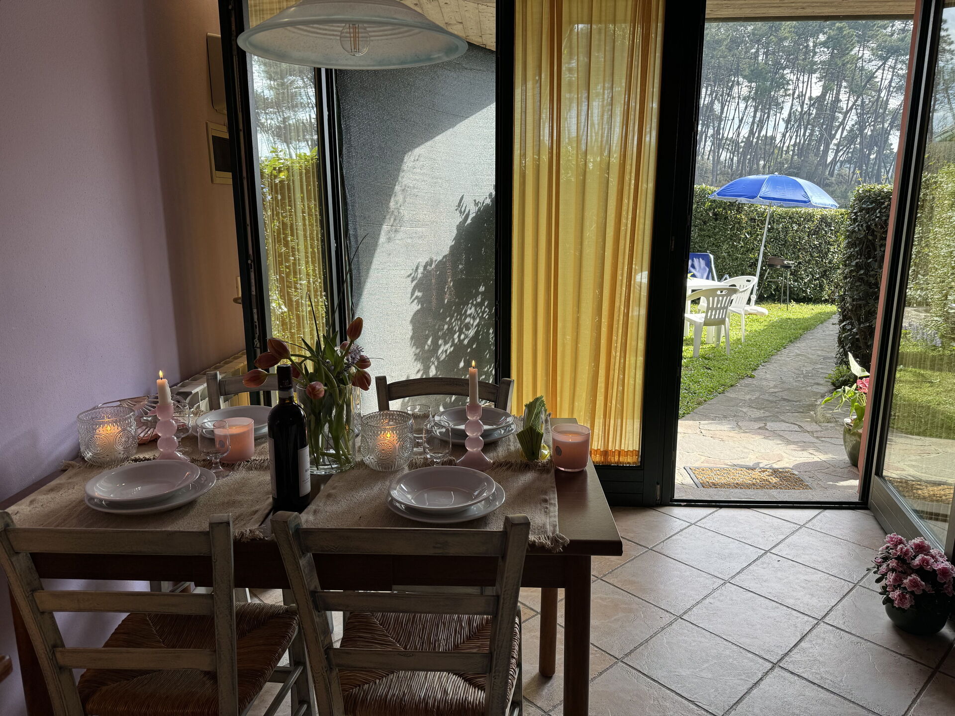 Cocina-salón: mesa de comedor (gente: 2), frigorífico, congelador, cocina de gas, horno, máquina de café americana, sofa (gente: 2), WIFI internet, mosquitero, tv vía satélite, detector de co2, acceso al jardín.