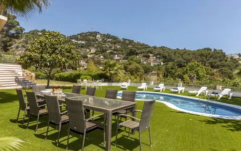 Roca Grossa a 4 km de Lloret de mar: Casa señorial "Castellet", agradable, confortable de 3 plantas, reformada en 2025. Por encima Lloret de mar, lugar aislado, soleado area residencial (villas), a 3 km del mar, a 3 km de la playa. Privado: bonito jardín para relajarse, piscina en forma de riñon (8 x 4 m, 100 - 180 cm de profundidad, Disponible por temporada: 15.May. - 18.Oct.). Ducha/WC en zona de piscina, porche (50 m2), muebles de jardín, barbacoa, garaje individual junto a la casa. Tienda 3 km, supermercado 3 km, restaurante 3 km, bar 3 km, panadería 3 km, parada autobús 1 km. Atracciones en los alrededores: Waterwolrd Lloret de mar 5 km, Marinland 15 km, Pueblo medieval Tossa de mar 12 km, Girona 42 m, Barcelona 80 km. A tener en cuenta: coche recomendable. Vecindario muy sensible a ruidos. Se ruega respetar la tranquilidad y normas de buen comportamiento.