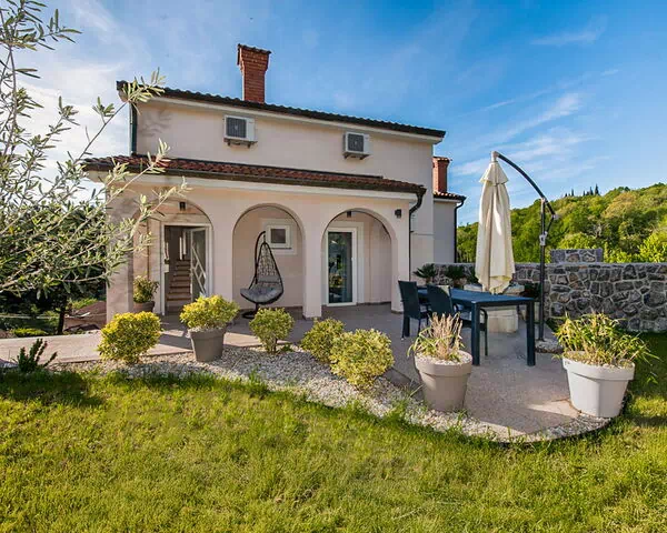 Mihelići a 6 km de Opatija: Casa de dos viviendas "Mihaela". En el aldea Mihelići, a 3.5 km del centro de Matulji, a 5.5 km del centro de Opatija, lugar tranquilo, soleado, elevado area residencial (villas), a 5.5 km del mar. Privado: terreno 900 m2 (vallada) con césped y flores, piscina rectangular (8 x 4 m, 160 cm de profundidad, Disponible por temporada: 01.Jun. - 15.Oct.) con escalera interior. Ducha exterior, casita de piscina, terraza (50 m2), muebles de jardín, barbacoa, lugar para hoguera. En el inmueble: acceso a internet, calefacción central, aire acondicionado, lavandería, lavadora. Aparcamiento (para 4 coches) junto a la casa en el mismo terreno. Tienda 800 m, supermercado 3 km, restaurante 800 m, bar 750 m, parada autobús 700 m, playa de gravilla 5.5 km, playa de cemento 5.5 km. Grupos de jóvenes sólo bajo petición.