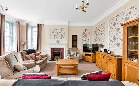 "York Hall Apt", apartamento de 3 estancias 150 m2, en la planta baja. Vivienda adecuada para 6 adultos. Salón con 1 sofá-cama, 1 cama-nido y chimenea. 1 dorm. con 1 cama de matrimonio. 1 dorm. con 2 camas. Cocina (horno, tostadora, hervidor de agua eléctrico, microondas, congelador). 2 ducha/WC. Terraza 10 m2. Barbacoa. Vista al jardín. El alojamiento dispone de: sauna, plancha, secador de pelo. Internet (Wifi, gratis). Plaza de aparcamiento (2 Coches). A tener en cuenta: apartamento para no fumadores.