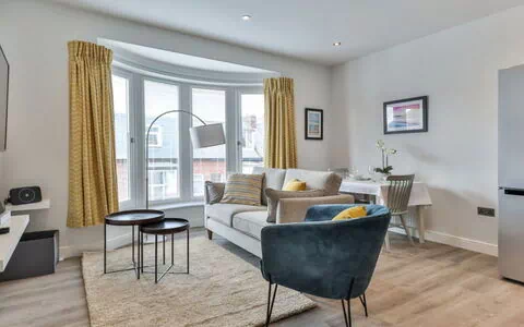 Filey: Casa de apartamentos. Supermercado 1 km, restaurante 100 m, estación de tren 1.5 km, playa de arena 500 m. Campo de golf 1.5 km.