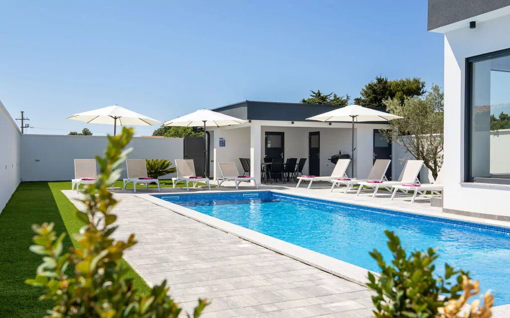 Casa "L&L", moderna. A 1.5 km del centro de Medulin, a 10 km del centro de Pula, lugar soleado, a 1.3 km del mar, a 1.3 km de la playa. Privado: terreno 450 m2 (vallada), piscina rectangular, climatizada (35 m2, 140 cm de profundidad, Disponible por temporada: 01.May. - 01.Nov.) con escalera interior y sistema de limpieza por electrolysis de sal. Ducha exterior, casita de piscina con WC, terraza (20 m2), muebles de jardín, barbacoa. En el inmueble: acceso a internet, aire acondicionado, lavadora. Aparcamiento (para 3 coches) junto a la casa en el mismo terreno. Tienda 600 m, supermercado 1 km, restaurante 700 m, parada autobús 750 m, playa de arena 2 km playa de gravilla 1.3 km. Escuela de surf 2 km, centro ecuestre 1 km, rutas de senderismo desde la casa 500 m, caminos para bicicletas 300 m. Atracciones en los alrededores: Amphitheater 10 km. El propietario no acepta grupos de adolescentes/jóvenes. Piscina climatizada (extra). Es necesario anunciar con 7 días de antelación si se requiere la calefacción de la piscina.