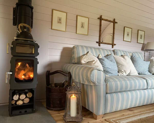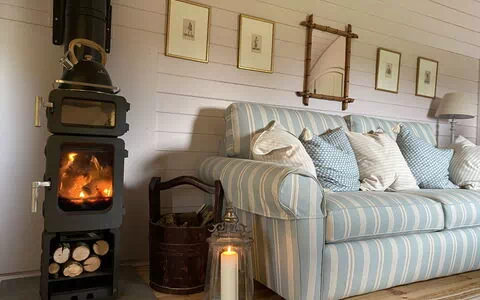 "The Cornflower", chalet de madera 2 estancias 15 m2. Vivienda adecuada para 4 adultos. Salón con 1 sofá-cama, 1 cama-nido y chimenea. 1 dorm. con 1 cama doble. Cocina (horno, hervidor de agua eléctrico). Ducha/WC. Terraza. Barbacoa. Plaza de aparcamiento (1 coche). A tener en cuenta: apartamento para no fumadores. 2 mascotas / perros.