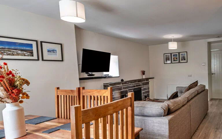 "Blaen Ddol", casa 4 estancias 125 m2. Vivienda adecuada para 5 adultos. Salón. 1 dorm. con 1 cama doble. 1 dorm. con 1 cama doble. 1 dorm. con 1 cama. Cocina (horno, lavavajillas, tostadora, hervidor de agua eléctrico, microondas, congelador). Baño/WC, ducha/WC. El alojamiento dispone de: lavadora, secadora. Internet (Wifi, gratis). Plaza de aparcamiento (2 Coches). A tener en cuenta: apartamento para no fumadores. Detector de humo.