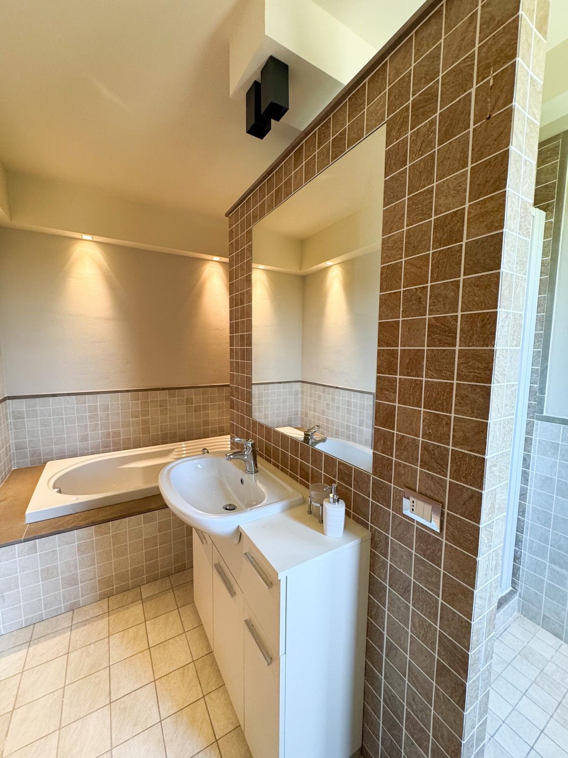 Habitación con baño 2: cama doble, WIFI internet, ventilador portátil, escritorio, jacuzzi, lavabo doble, baño, bidé, ducha, secador.