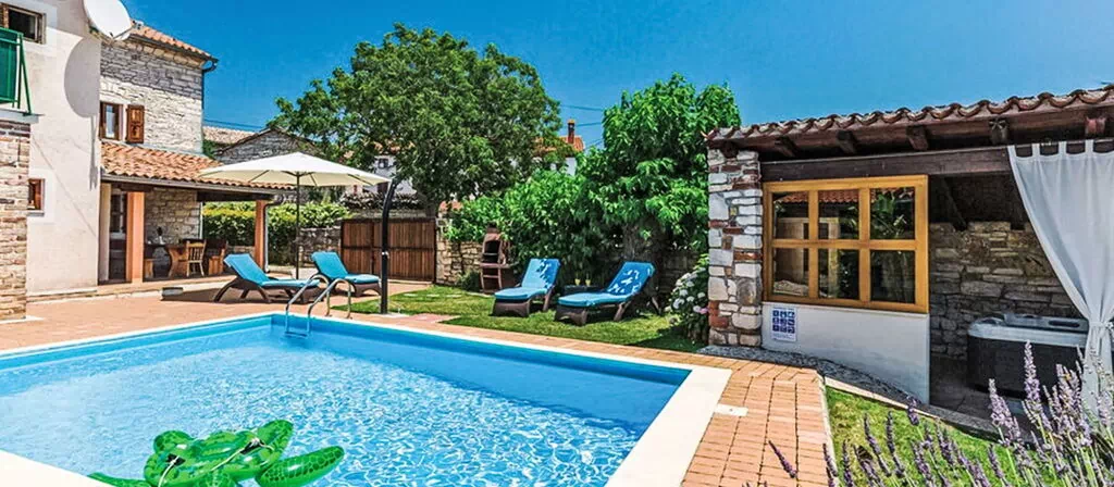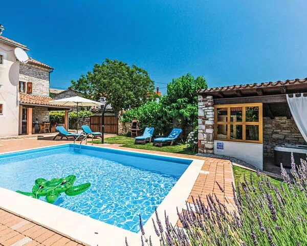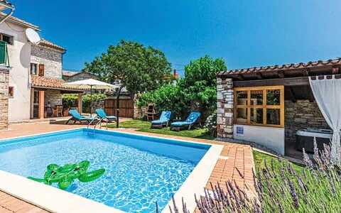 Rovinjsko Selo a 6 km de Rovinj: Casa semiadosada "Matohanci", agradable de 3 plantas. En el aldea Matohanci, a 4 km del centro de Rovinjsko Selo, a 7 km del centro de Kanfanar, lugar tranquilo, soleado, a 10 km del mar. Privado: terreno 300 m2 (vallada) con plantas, piscina rectangular (7 x 4 m, 110 - 135 cm de profundidad, Disponible por temporada: 01.May. - 30.Sep.). Ducha exterior, piscina de hidromasaje, terraza (12 m2), muebles de jardín, barbacoa. En el inmueble: acceso a internet. Aparcamiento (para 2 coches) junto a la casa. Supermercado 4 km, restaurante 50 m, parada autobús 1 km, playa de gravilla 10 km, playa rocosa 10 km. Rutas de senderismo desde la casa 50 m, caminos para bicicletas 100 m. Atracciones en los alrededores: Lim Bay 6 km. El propietario no acepta grupos de adolescentes/jóvenes. A tener en cuenta: el propietario vive en el mismo terreno. Aeropuerto 48 km de la casa.