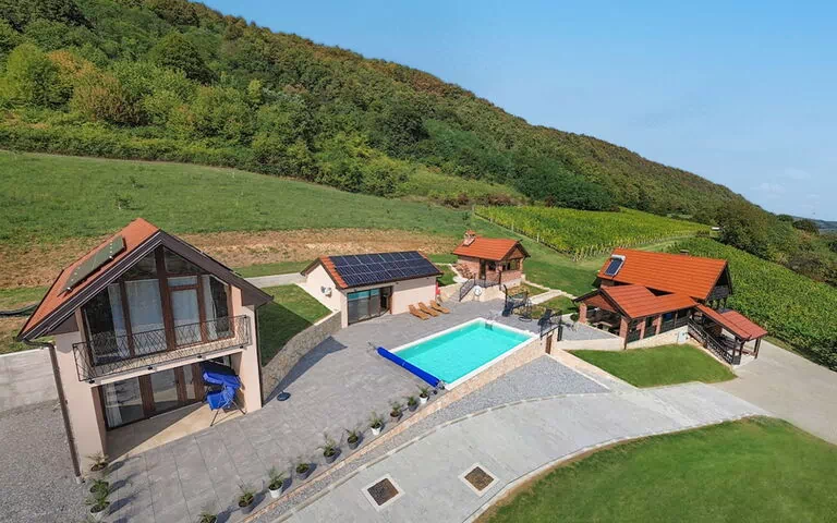 Kalnik a 16 km de Križevci: Casa unifamiliar "Vila Breg", agradable, rústica de 3 plantas. A 42 km del centro de Varaždin, a 69 km del centro de Zagreb, en una pendiente. Privado: terreno 5'000 m2 con césped 1'000 m2 árboles, piscina rectangular, climatizada (8 x 4 m, 145 cm de profundidad, Disponible por temporada: 15.Abr. - 14.Oct.) con agua de mar, escalera interior y sistema de limpieza por electrolysis de sal. Ducha/WC en zona de piscina, ducha exterior, piscina de hidromasaje, tenis de mesa, terraza (20 m2), muebles de jardín, caseta de barbacoa, parque infantil (tobogán, columpio), mantenimiento de la piscina a través del propietario/jardinero. En el complejo: acceso a internet, sauna, futbolín. Acceso empinado hasta la casa (100 m camino de tierra). Aparcamiento (para 4 coches) junto a la casa en el mismo terreno. Tienda 2.5 km, restaurante 3.5 km, café 2.7 km, alquiler de bicicletas 3.3 km, parada autobús 1 km. Rutas de senderismo desde la casa 50 m. Atracciones en los alrededores: Old town Veliki Kalnik 3.6 km, Varaždinske toplice 33 km. Grupos de jóvenes sólo bajo petición. La unidad consta de dos casas alquiladas como una sola unidad.